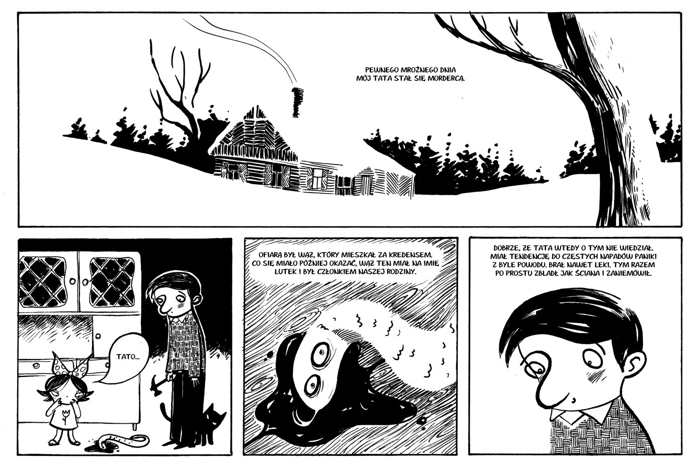 Łauma jest to komiks stworzony przez Karola "KRL" Kalinowskiego opowiadający historię Dorotki, typowej miejskiej dziewczynki która musi zamieszkać w domu swojej niedawno zmarłej babci. Cała przygoda zaczyna się Kiedy jej ojciec zabija węża pod zlewem. Ale czym jest do kurczaka Łauma? Kreska jest świetna dobrze oddająca klimat, wszędobylska i dociekliwa dużo oka Dorotka jest wspaniała. Niestety nie zobaczymy w całym zeszycie ani krzty koloru wszystko zrobione jest w tonacji Black and White.